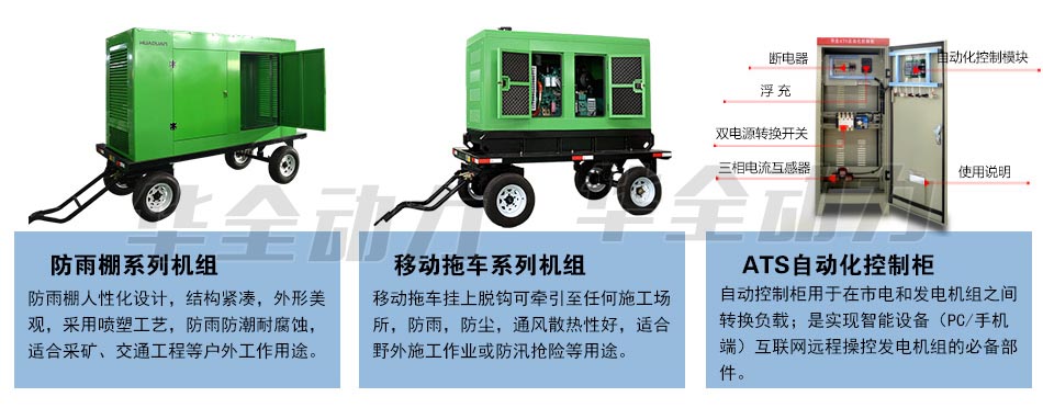 移動拖車掛上脫鉤可牽引至任何施工場所,防雨,防塵,通風散熱性好,適合野外施工作業(yè)或防汛搶險等用途。